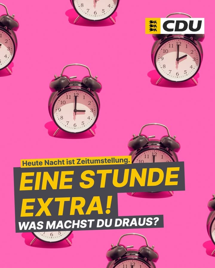 Heute wird die Uhr zurückgestellt ? von Sommer- auf Winterzeit! ⏰Das heißt: eine Stunde mehr.Mehr Zeit für Familie.Mehr Zeit für Gesundheit.Mehr Zeit für Sicherheit.Mehr Zeit fürs Ehrenamt und politische Engagement.Egal, wofür du sie nutzt ? nutzen wir die zusätzliche Stunde bewusst.Einen guten Start in die Winterzeit!